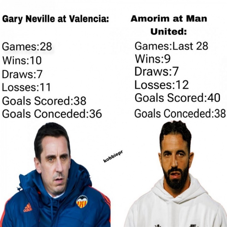 内维尔笑不出来……只因自己执教战绩同样惨淡……